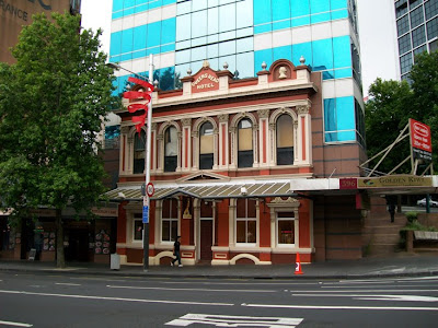 That said, I do like the remains. (I would have liked to have seen a Victorian-style pub there still instead of another glass tower, but ...) Auckland City Council gave the façade a C2 protection rating in 1986. That's a low rating, and no longer applicable (there's only A and B scheduling now); it doesn't appear to be included on the list anymore.