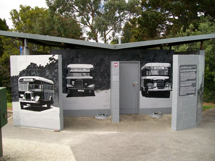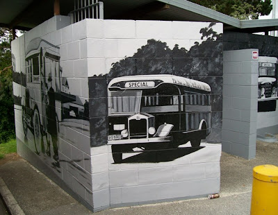 If you're in Auckland and haven't seen this before, stop by the Roskill South shops, and walk down the Richardson Road hill to spend a penny and take a look at this really quite marvellous piece of Auckland transport history.