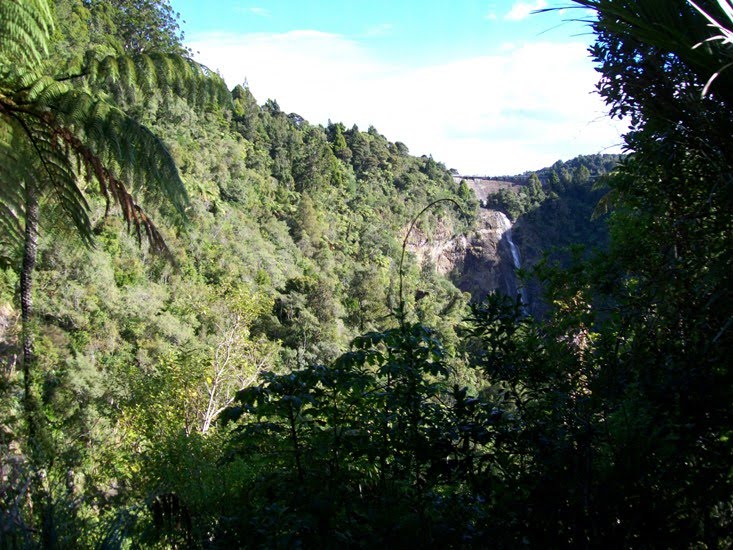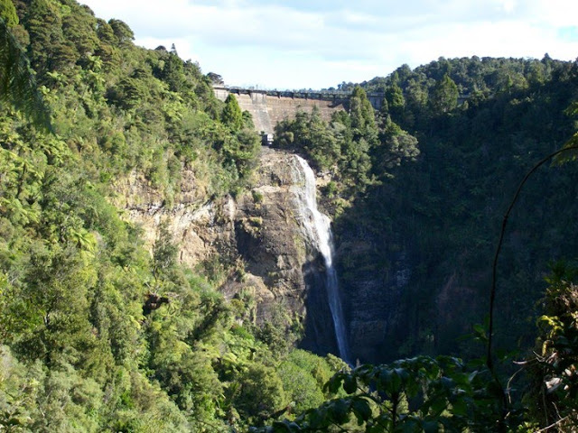 Once you're out of the bush and tunnels -- there are spectular views, like this: Waitakere Falls.