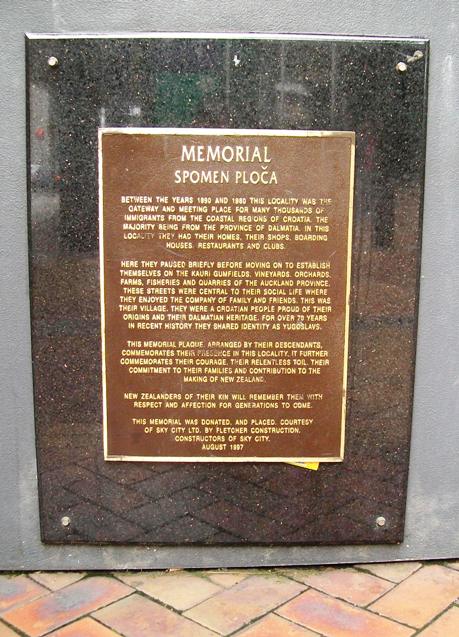 This memorial was donated, and placed, courtesy of Sky City Ltd. by Fletcher Construction, Constructors of Sky City, August 1997.