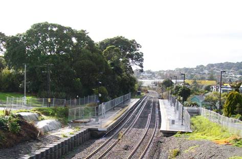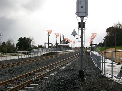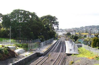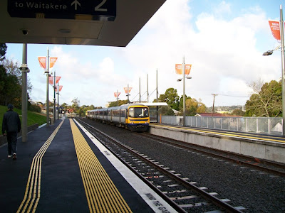 Come Monday morning, and the new station is operational. This is a shot from the westbound platform (In was headed to Henderson and Mill Cottage) of the eastbound platform. Met up with another long-time Avondale resident who said the only thing amiss was that there was no nearby purpose-built carparking. He was right -- ARTA and Auckland City have yet to come to some agreement as to what and where they'll have as a parking area (park n' ride, or kiss n' ride).