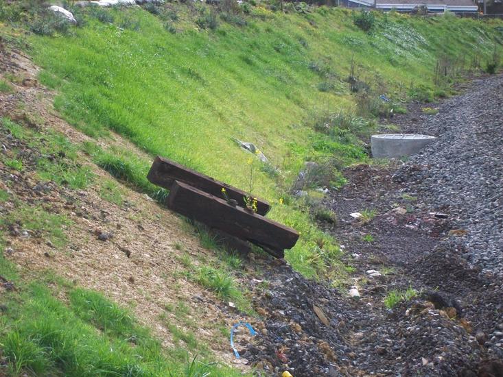 Rounding off July: I find myself intrigued by three hunks of wood bolted together and left at the side of the eastbound track at Avondale Train Station.
