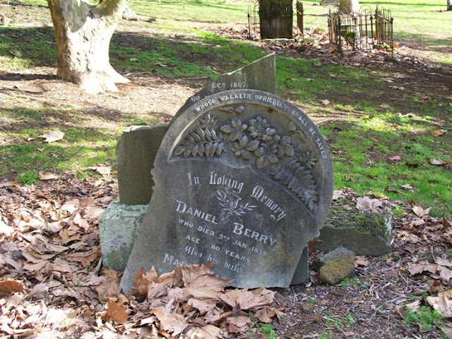 I only wandered through part of this old cemetery yesterday afternoon. The steep hill and soft conditions put me off -- but perhaps in warmer weather, I'll head up to see what is at the edge of the rest of the reserve. For now, here are some of the images.