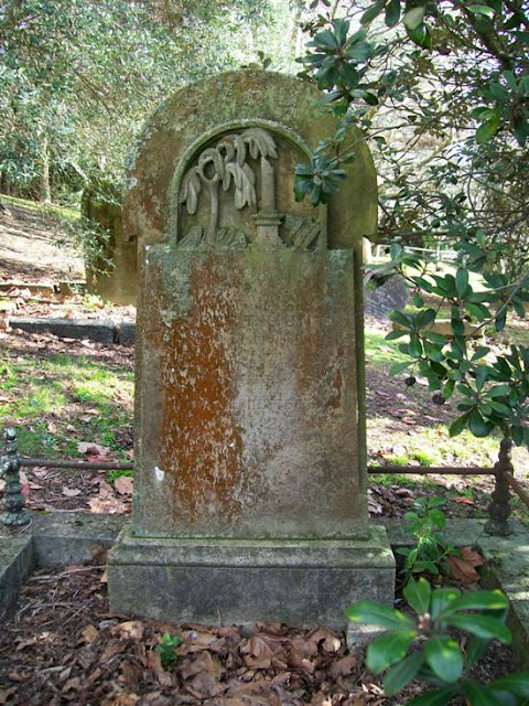 This one is unusual. At the top of the headstone is the "broken pillar", symbol for a life cut short. But Robert Hunt, whose stone this is, died aged 83.