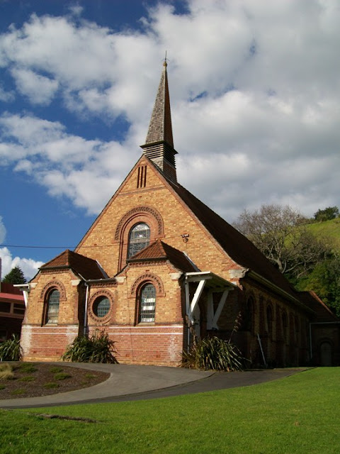 St Aidan's Presbyterian Church, on Onewa Road, Northcote. My apologies, theses shots of that church were taken close to dusk on 20 June this year, as I decided to do a trek from Highbury down Onewa Road just to get shots of the building. I love ecclesiastical architecture anyway, but this 1931 church, using different brick colours to such wonderful effect, made me determined to take the photos.