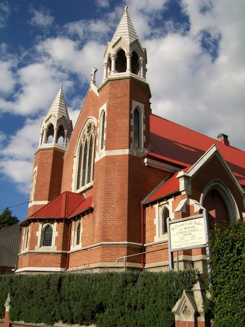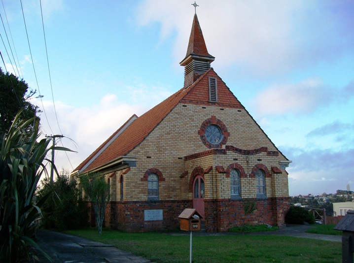 The original St Francis de Sales church here was a smaller church originally built by Bishop Pompallier in Symonds Street, according to Lois Westwood in The Hundred of Devonport (1986). The Catholics applied to the Crown for a site at Devonport, and part of the existing Mt Victoria Cemetery, promised initially to the Presbyterians, was at the time still unused (the Presbyterians then ensconced in Church Street). So, the government said to the Catholics that they could go ahead and have the site, they duly loaded the old 1866 church on hore-drawn wagons, carted it to the harbourside, and floated the building across the water on a punt, before hauling it up the steep grade to the present Albert Street site. This, as you can imagine, did not go down well with the Presbyterians. But, after arguments and appeals, the government then put forward the current solution: Catholics here, Presbyterians as the neighbours alongside. St Paul's was built in 1917, and thios latest version of St Francis de Sales in Devonport followed two years later.