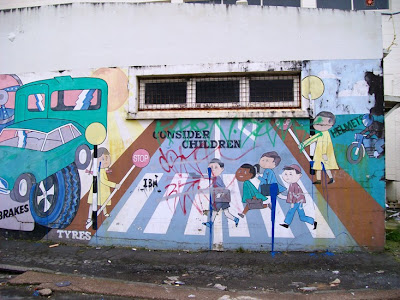 I was asked recently how old the mural is. I'm still scratching my head on that one -- but I think it's done very, very well against the elements, car exhausts from vehicles parked just across the way, and taggers.
