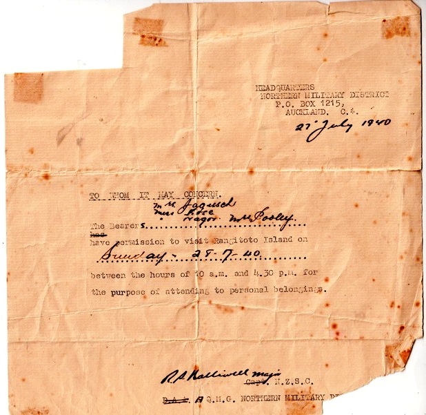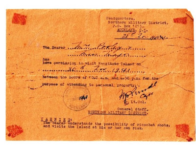 The Defence Department had involvement with Rangitoto in the last century from the 1930s, but facilities there were intended not as armed defence batteries, but as guidance facilities, to assist the other batteries in aiming for the target. The "WARNING: The bearer understands the possibility of ricochet shots, and visits the island at his or her own risk" intrigues me. Were all visitors to the island put through these stringent measures?