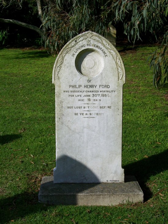 This gravestone beside St Paul's Presbyterian Church on Albert Road in Devonport caught my eye because of the blankness of it. Philip Henry Ford was 16 when he tragically died, but the rest of his family are not here with him. The wording got to me too: "who suddenly chanced mortality for life."