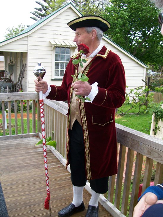 We were warmly greeted by the residents, although considering the chap in the coat was the town cryer, we heard nothing more from him after this ...