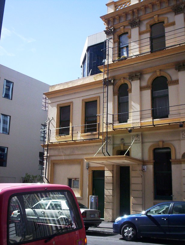 NZ Historic Places Trust dates the building from 1884, Peter Shaw in a Metro magazine article in 1990 said 1905, but the truth appears to be somewhere in between. There were two extensions added, in 1907 and 1911, lending the whole complex the label of "Edwardian Baroque". They say Edward Mahoney was the architect, but I've yet to see anything hard and fast regarding that. Yes, he was Gleeson's architect of choice, and his work dots the landscape in terms of hotel architecture (Mahoney is fascinating, being architect both of "dens of iniquity" and, as a Catholic, houses of the Lord for that sector of the community.)