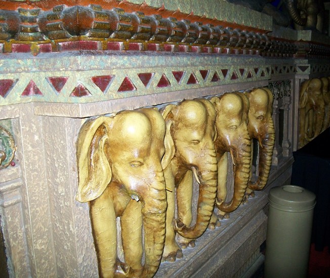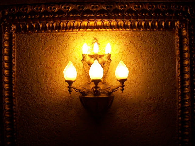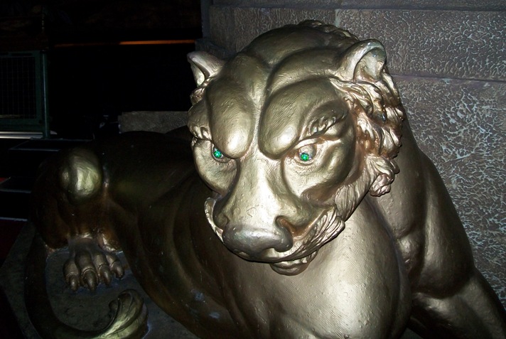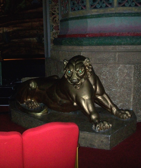 One of the two lions. These days, their eyes are blue lights, occasionally twinkling. But I'm sure, when I used to see movies here, they were flashing red. Ah well ...