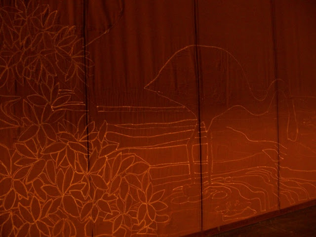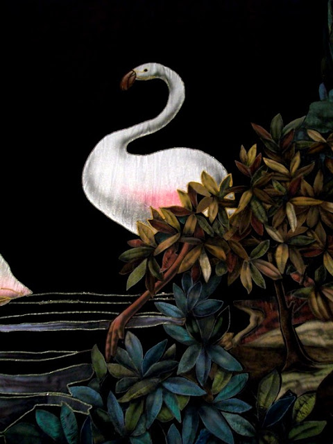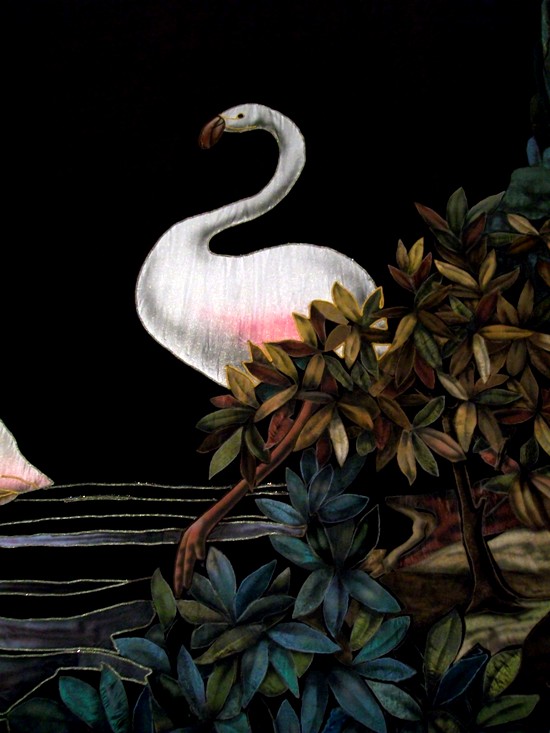 Each bit of the flamingo curtain, every leaf, had to be sewn individually. It shows much much went into it from the rear.