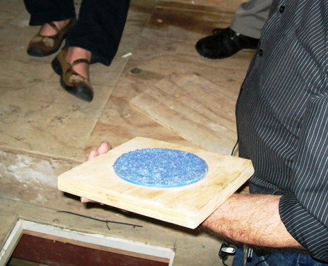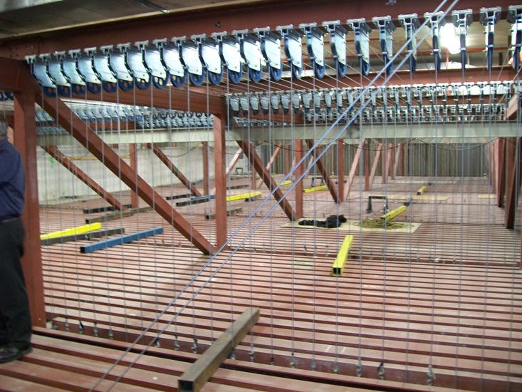Above, a view from the sky down to the stage. George wisely cautioned that we keep a firm hold on the cameras!