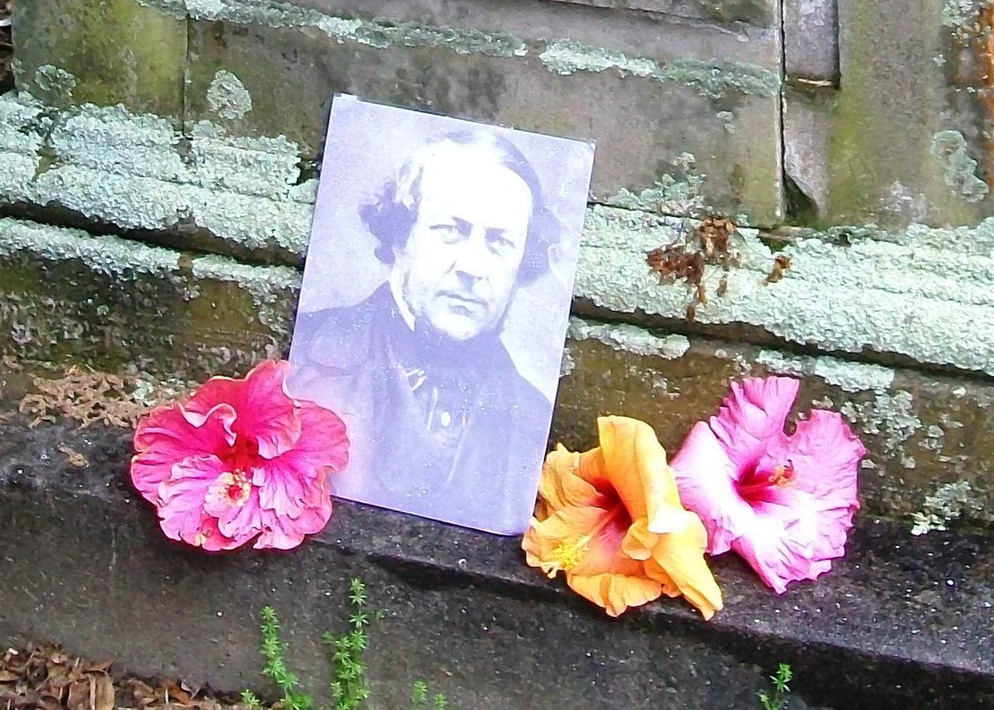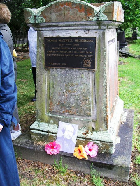 On a rainy and slightly chilly December morn, members of West Auckland Historical Society and I marked the bicentennary today of the birth of Thomas Maxwell Henderson, of Henderson's Mill and Circular Saw Line fame, out at Symonds Street Cemetery. I provided the image of younger Mr Henderson in his prime, and the gorgeous hibiscus blooms came from the garden of Trevor and Fay Pollard.