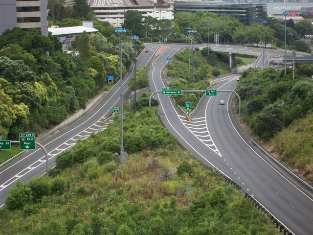 The other thing is -- the Waiparuru was essentially a swampy outflow from the volcanic slopes. The map above, from the 1840s (Roll 61, LINZ records), shows the stream's marshy progress at the bottom of Grafton Gully, fed by streams from the Domain and then, further down at Mechanics Bay, fed by the Waipapa as well to create something like a marsh in the wet season. Before the construction of the Strand, Parnell Rise, and reclamations channelled the waters and tamed them, and before the motorways in the 1960s-1980s finally buried them.