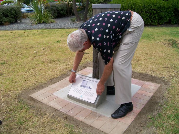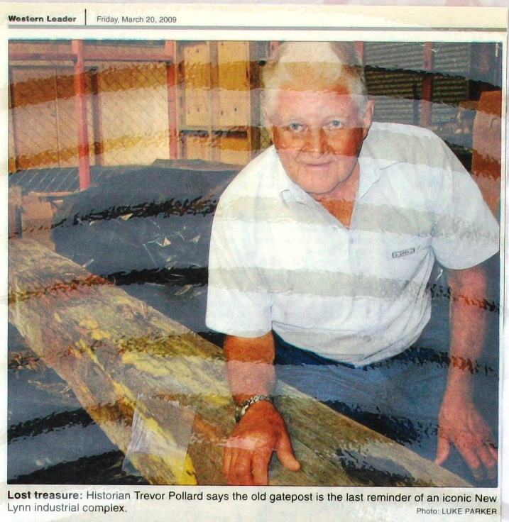 Around 2006, Trevor spotted an old post sticking out of the ground at the corner of the site which was once NZ Brick, Tile & Pottery Ltd (Albert Crum, manager), then Amalgamated Brick & Pipe and later Crown Lynn potteries. He rescued it from construction oblivion early last year, and started to campaign for Waitakere City Council to resite the post with an appropriate interpretive sign.
