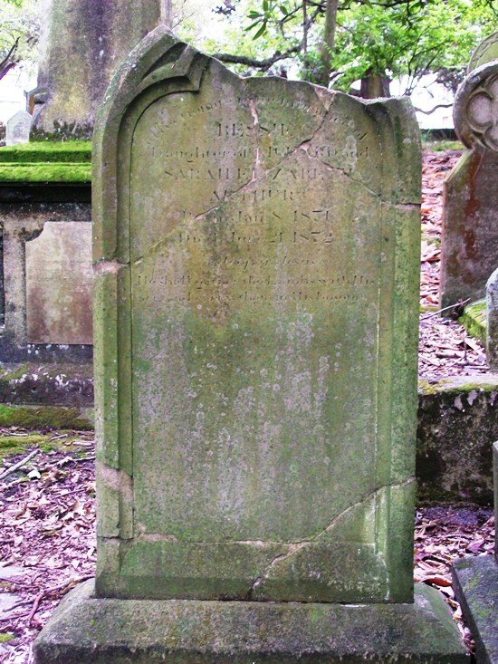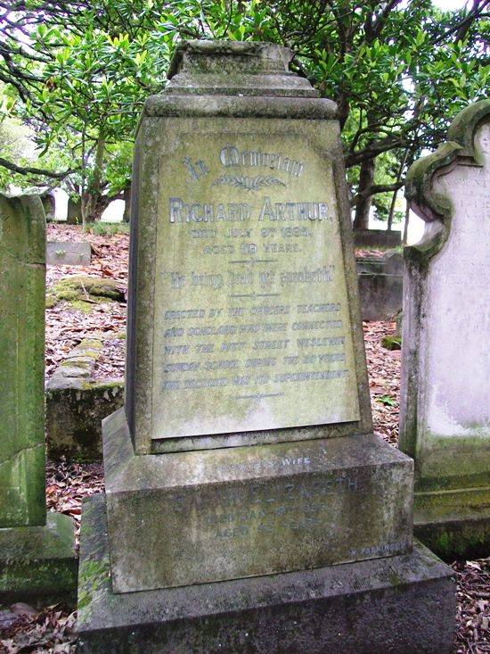 Above, the grave of his father Carpenter Arthur., died 1871 aged 64 years., while below, Bessie, Richard Arthur's daughter, died just under a year and a half old.