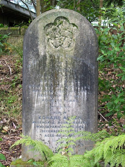 Rev Hobbs' daughter Elizabeth (1842-1921), along with her husband George Sargent Jakins (1839-1928), are buried next to him. According to what's available via Paper's Past, George S Jakins arrived in Auckland from London on the Nourmahaul in 1859. He married Eliza Hobbs at Rev. Hobbs' residence at Beresford Street in Auckland 1 May 1862. He was a licensed Custom House Agent by February 1863, and had his headquarters on Queen Street the following year. In 1865 he entered into partnership with Samuel John Edmonds, merchants, under the name Edmonds & Jakins. The family sold up their Wellington Street home that year and sailed for Melbourne. He came back in 1866 and set himself up as an importer and commission agent on Queen Street Wharf. The firm of Edmonds & Jakins apparently continued through to February 1867, when it was wound up., Jakins consigning debts to Edmonds. Another partnership, with Henry Palmer of Mahurangi, was dissolved in April 1867. This, however, doesn't appear to have been an amicable parting of the ways.