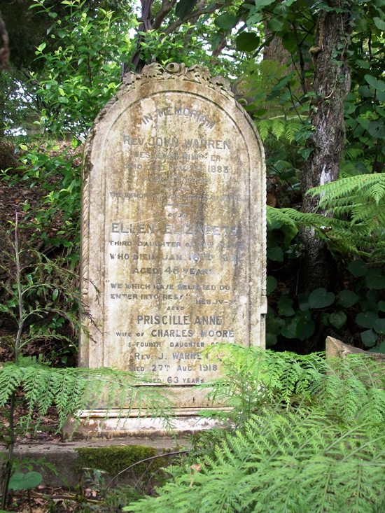 In 1865, as superintendent of the Wesleyan circuit in Auckland, Rev Warren conducted the ceremony of the laying of the foundation stone for the Pitt Street Wesleyan Church. (Southern Cross, 16 November 1865) In 1869, he settled in the Otahuhu circuit, and continued to lecture into the 1870s. At his Onehunga home, he became known for growing oranges, amongst the first in Auckland. (Wellington Independent, 16 June 1874). He fell seriously ill in June 1879. He died 24 November 1883 at Park House in Ponsonby, aged 69.