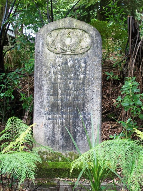 By October 1868, Jakins was selling "Whelpton's Vegetable Pills" and stone lime from his Produce Stores at Durham Street. The following year, he becoming involved as a shareholder and director of mining companies. In July 1870, another partnership, this time with E D Willcox. By 1879, the Jakins & Willcox store had shifted to Custom Street, then the partnership dissolved in the 1880s and Jakins was again in business on his own. By 1890, he was in Sydney, selling produce in Sussex Street. He returned to New Zealand and settled in Christchurch in 1891. Is he the same G S Jakins who operated the Belfast Dairy Factory in Canterbury in 1895? It appears he was a produce merchant in Christchurch in 1901. By 1921, when Elizabeth died, they were living in Parnell.