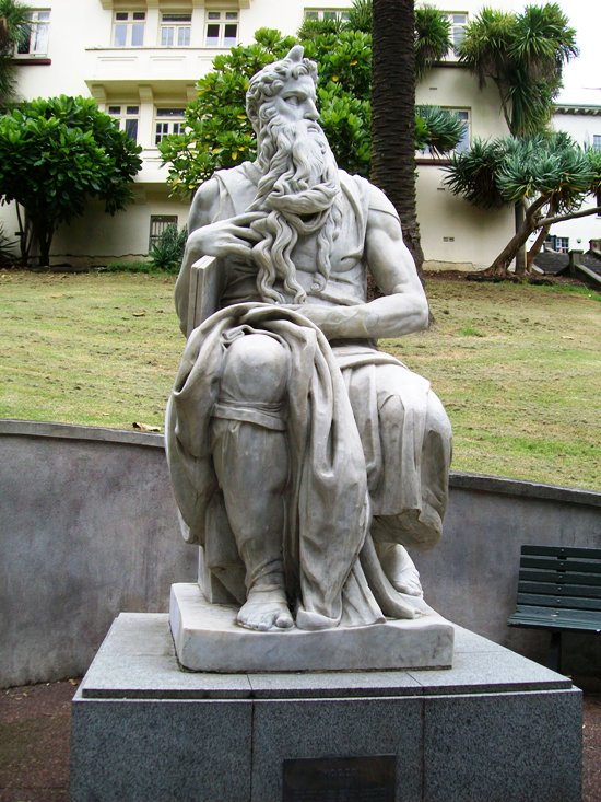 The statue of Moses is the first thing you see in the park from the K'Road entrance.