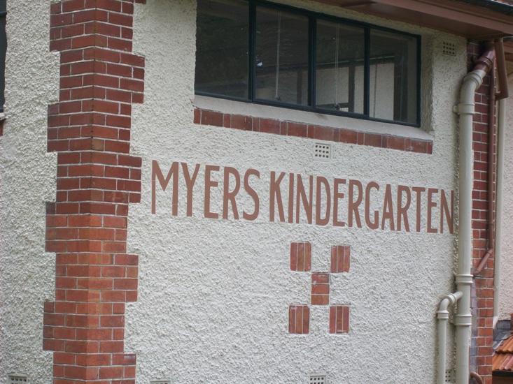 As mentioned in the Evening Post report above, Sir Arthur Myers donated money to establish both a kindergarten here and a "school for backward children".According to the Council's interpretive signage, the building was designed by Benjamin Chilwell and Cyril Trevithick, influenced by both the English Arts and Crafts movement, and California bungalows.
