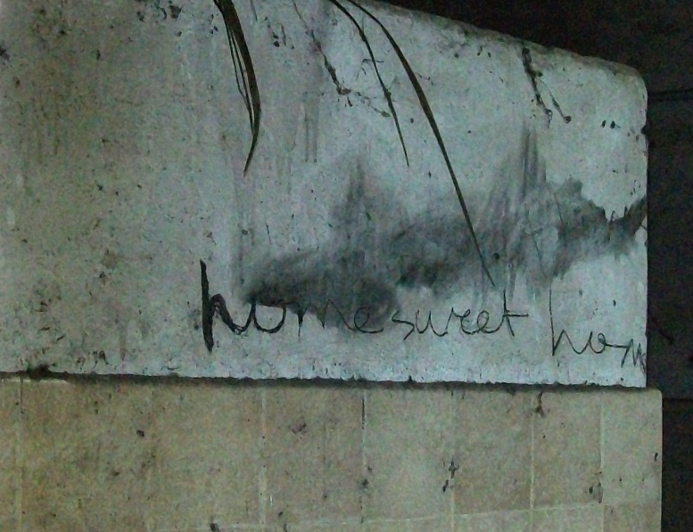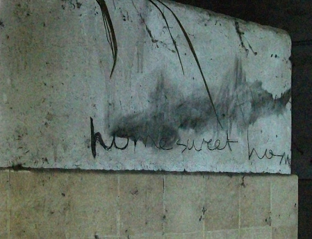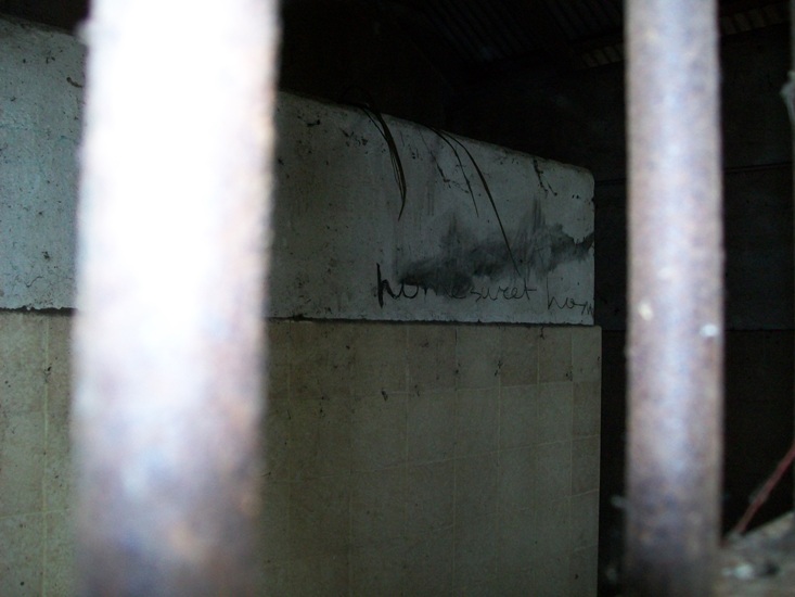 On the grubby tiles inside the locked gate, a message to the world from someone armed with a permanent marker.