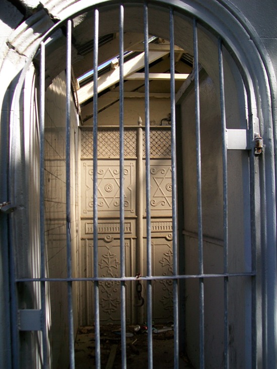 ... and here's the rather beautiful, but rubbish-strewn locked interior.