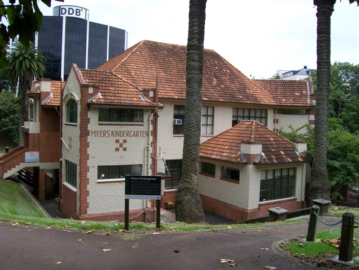 According to the signage: "Arther Myers intended it as a Christmas present to the children of Auckland, and his family also donated a large box of toys for the first intake. By 1923 the kindergarten had 40 pupils. Milk and biscuits were served every morning, and the children were required to do their own washing up."
