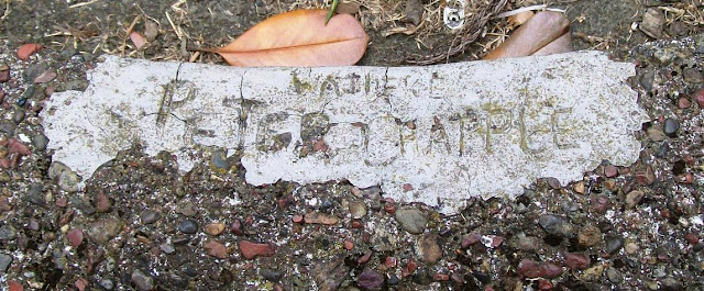 The council hasn't swept the paths in front of the loo clear of those same leaves about to engulf it for some time, but cracks in walls have been seen to. In this one, Peter Chapple of Waiheke has left his mark on the park.