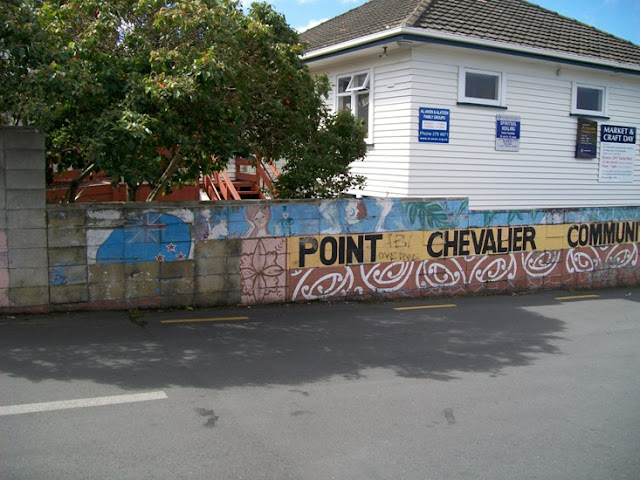 So, the good news is that a special arts project is underway, with artist Zoë Nash seeking local community input as to what makes up Pt Chevalier, and how to express the essence of "Point"; not in traditional muiral form, but with images as art, fixed to the wall, like tiles of metal sheets. The final details as to how the work will be achieved are still to be worked out. From her email to me: