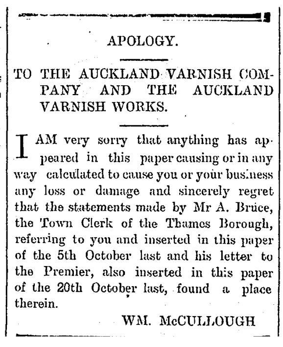 ... while the Bests, and the Auckland Varnish Company, did not take at all kindly to Mr Bruce’s remarks. In fact, they were probably spitting tacks by this point.