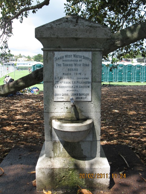 Neville Exler, a fellow member of the Avondale-Waterview Historical Society, emailed this photo yesterday of the drinking fountain and commemorative plaque at Vellenoweth Green, St Heliers (thanks, Neville!)