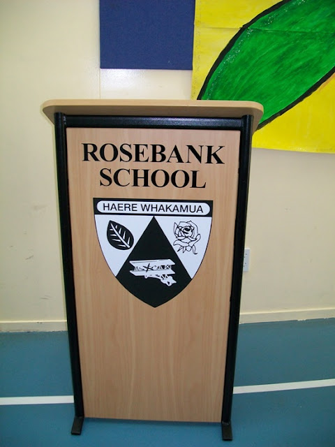 I have a bit of a soft spot for Rosebank School, even though I actually attended Avondale Primary -- in part because Rosebank incorporate our district's heritage in their school shield: the rose for Rosebank, but even more cool, the Sandford-Miller bi-plane at the bottom. Recently, a class there went in for one of those Fair Go competitions for schools, and I was invited to sit in a room with the children involved with the project, bombarded with questions about Avondale's past, and what neat places there are to film here for their project. That was one of the most delightful afternoons I've experienced.
