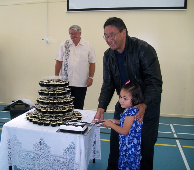 To cut the cake, the school had arranged two very special guests: Hone Harawira, MP (who attended Rosebank School when it opened in 1961), and Rosalina Kennach, who had a "first day at school" experience on Tuesday that I would lay odds few children would have this year! The centre of attention, she did remarkably well. Her uncle, Paul Hunter (also chairman of the school's jubilee committee), kept a close watch.
