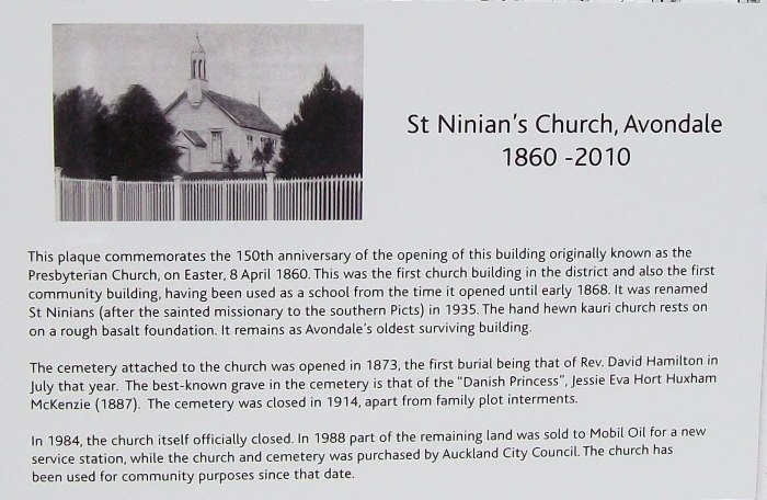On 5 February 2011, the Avondale-Waterview Historical Society held its first meeting for the year at St Ninians. We were the first community group to use the building since it was closed in 2007. Restoration work began in October 2010, and only finished 1 February this year.