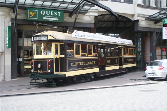 ReplyDeleteHere's the proverbial Christchurch wedding snap of my daughter [she who has just produced my first grandchild :D], her husband and their wedding group on the tram by the Arts Centre on 12 March 2005.