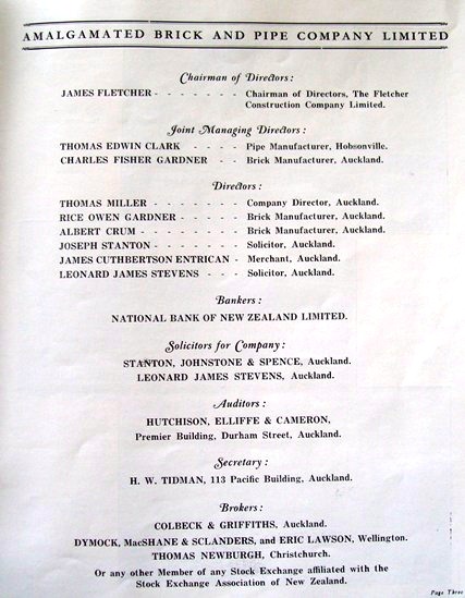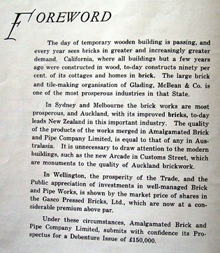 I visited members of the Crum family the other day, descendants of Albert Crum who (with Hugo Friedlander) started up the New Zealand Brick, Tile & Pottery at New Lynn in 1905. A prospectus was produced from 1929 -- the first for the then-new Amalgamated Brick and Pipe Company Limited. My thanks to the Crum family for allowing me to photograph this important document in Auckland's brickmaking history.