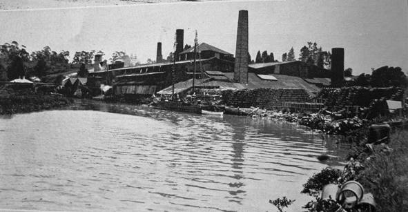 New Lynn's NZ Brick, Tile & Pottery worls, Rankin and Clark Streets. Note the railway overbridge -- this was the days long before trenching.