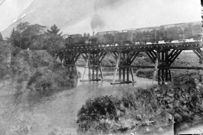 These images come from photographs held by Heather White, grand daughter of Albert Crum, who operated the NZ Brick, Tile and Pottery Works at New Lynn from 1905 to 1929. Apart from the one above, they appear to show the aftermath of an almost forgotten train collision in May 1913 in the vicinity of the Rewarewa stream railway bridge between New Lynn station and Titirangi Road. The above image probably shows the Whau River bridge, which has been replaced by a modern version, due to the double-tracking of the Western Line.