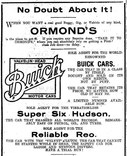 In the second decade of the 20th century, Ormond's was the sole agent for importing and distributing Reo brand motor vehicles in the country.