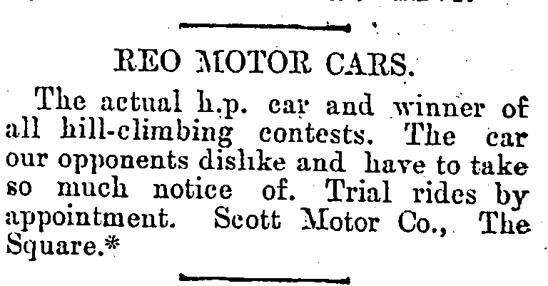 Motoring enthusiasts would be well aware that REO stands for Ransom Eli Olds, after whom not only the REO brand and REO Motor Car Company was named, but also the Oldsmobile. REO was established in 1904 in America; by 1905, the ads had hit this country.